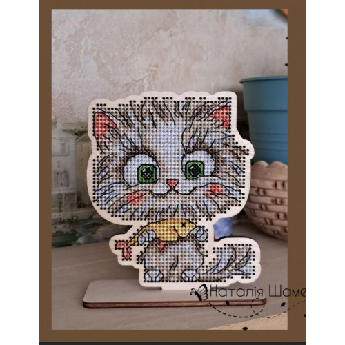 Набір для вишивання хрестиком на дерев'яній основі Кошеня і рибка (НШ-00098), Кошеня і рибка (НШ-00098),